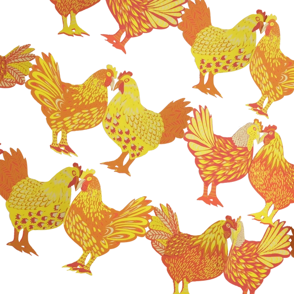 - Each concertina garland is hand made and printed on cotton paper with 4 chicken designs repeating over 20 times to make up the concertina.